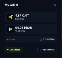 - Hedera mainnet account funded with HBAR for fees and QAIT for operations